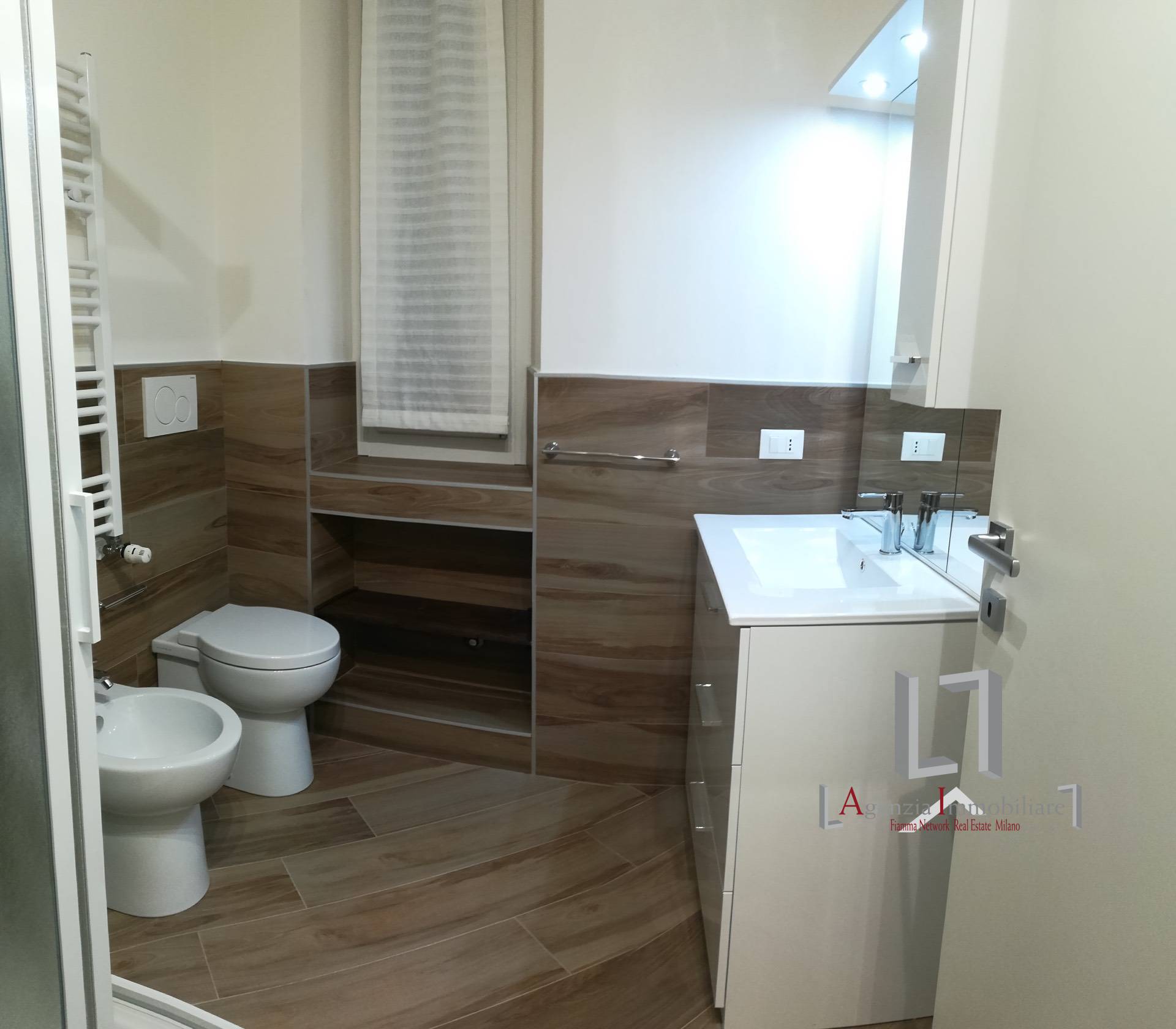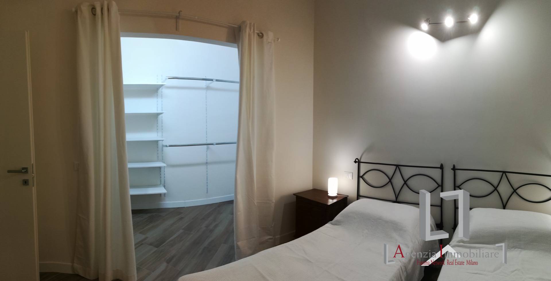 L'Agenzia Immobiliare propone in locazione in stabile medio signorile, di recente ristrutturazione ed in ottime condizioni interne, al primo piano con ascensore, ampio trilocale così composto: ingresso, soggiorno con cucina a vista e balcone, due camere da letto (di cui una con cabina armadio) due bagni con box doccia. L'immobile è climatizzato, viene consegnato interamente arredato e completo di elettrodomestici. Libero da giugno 2026.